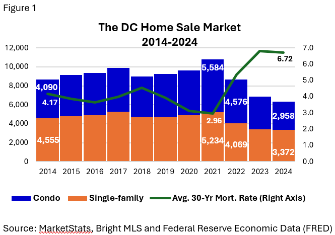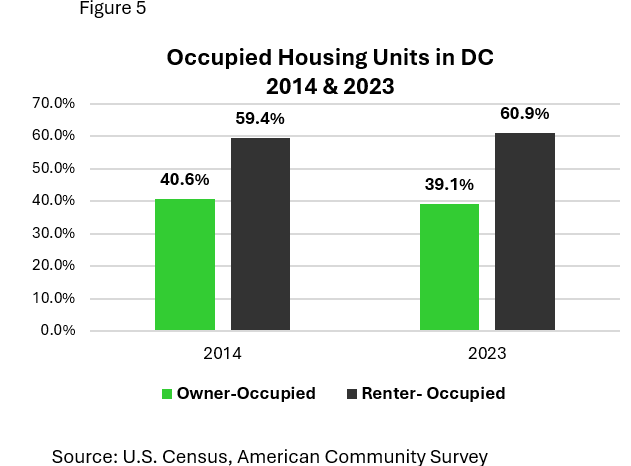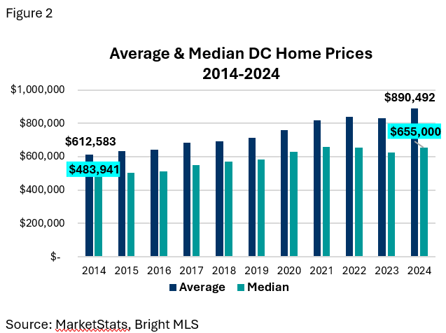 Other data used: MarketStats, Bright MLS home sale data for the District of Columbia 2014-2024; Federal Reserve Economic Data (FRED); and U.S. Census/American Community Survey 2014 & 2023.